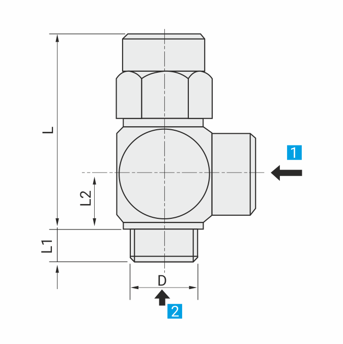 | 1- Non-return direction (Free-flow) 2- Flow control direction (Adjustable flow) 3- Can be turned through 3600 |