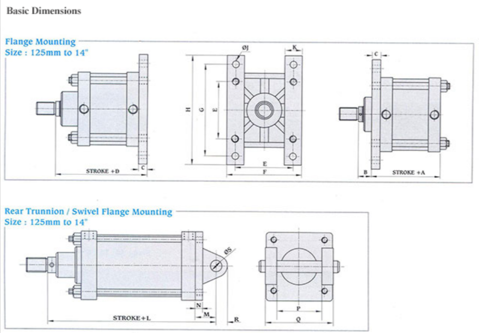 | Bore Size | A | B | C | D | E | F | G | H | J Ø | K | L | M | N | P | Q | R | S Ø |